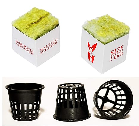 Maestro Enterprises Hydroponic Rockwool 20 Cubes With 20 Net Pot 2 Inch Beige And Black Amazon In Garden Outdoors