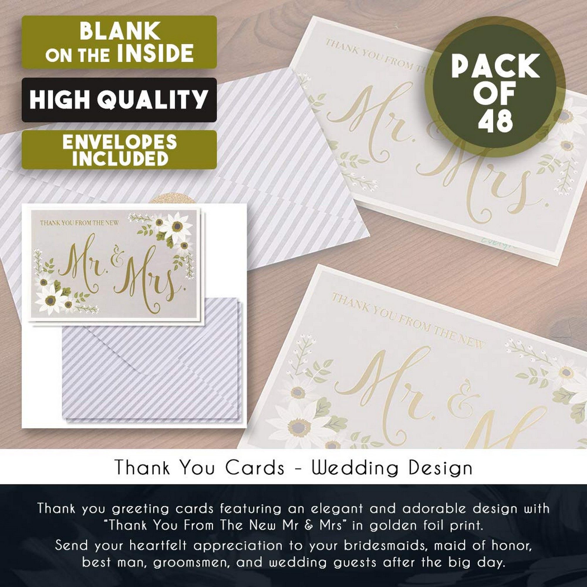 Wedding Thank You Cards 48 Pack Gold Foil Thank You From The New